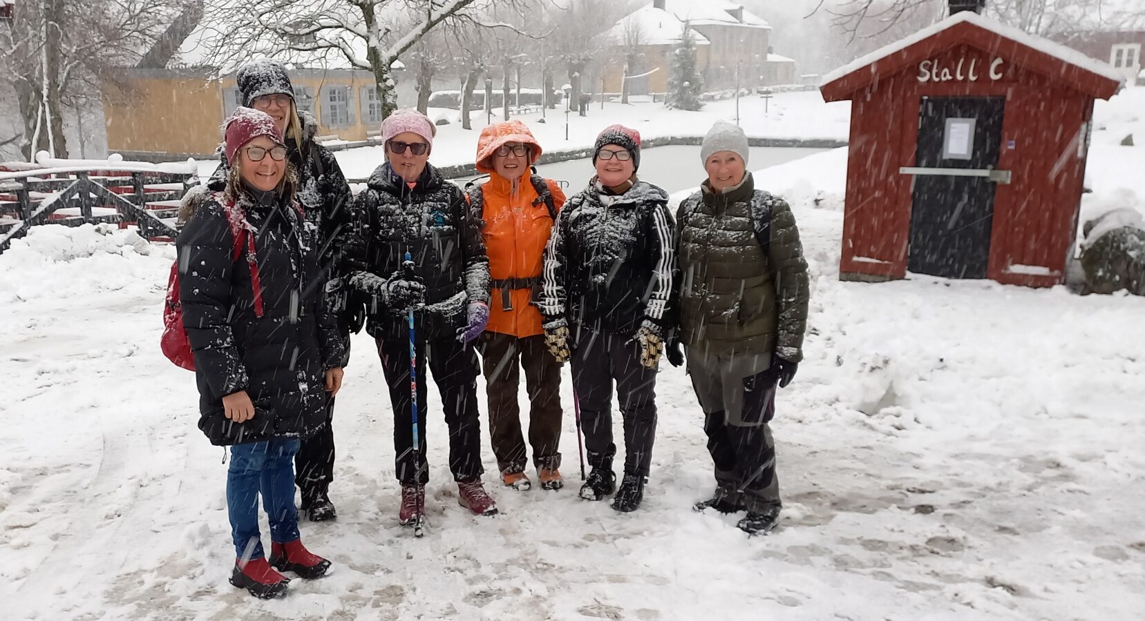 Kontrollera SMHI:s väderprognos kvällen innan promenaden. Ta vid behov med regnkläder eller broddar om det finns risk för regn eller halt väglag.